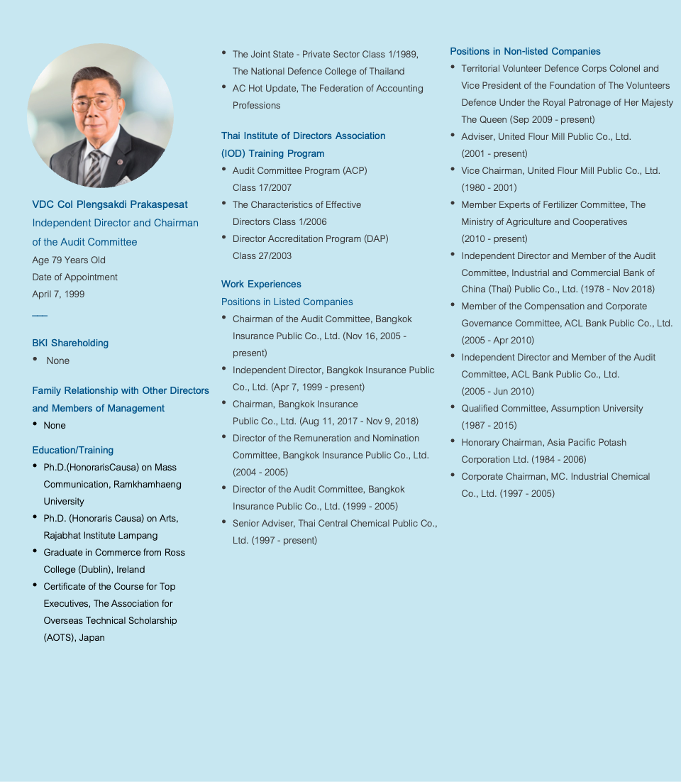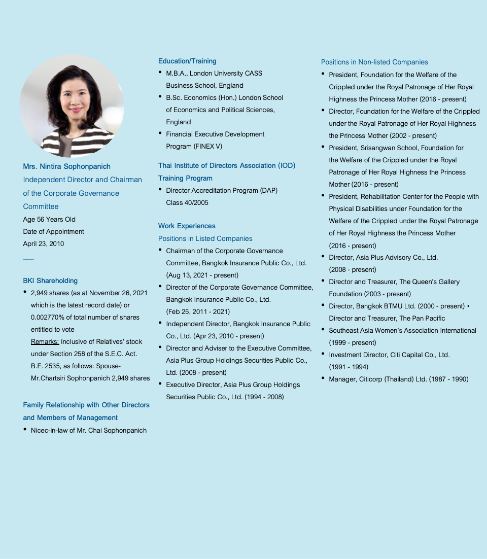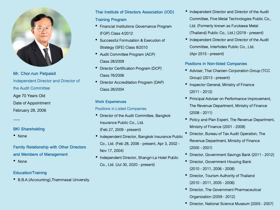ของบริษัทฯ มีคุณธรรม จริยธรรม ประวัติการทำงานที่โปร่งใส รวมถึงผลการปฏิบัติงานในอดีตที่ผ่านมา และนำเสนอต่อที่ประชุมผู้ถือหุ้นหรือ