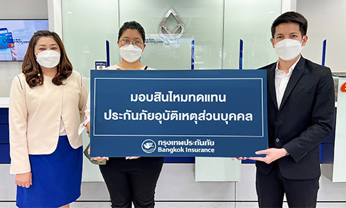 กรุงเทพประกันภัย โดยคุณชิดชัย เชื่อมชิต ผู้จัดการสาขาหัวหิน เป็นผู้แทนบริษัทฯ มอบสินไหมทดแทนประกันภัยอุบัติเหตุส่วนบุคคล PA 1st VIP ให้แก่คุณดวงฤทัย เด่นจารุกูล ซึ่งเป็นบุตรและเป็นผู้แทนผู้รับประโยชน์ จำนวนรวม 5,120,000 บาท จากกรณีคุณยุทธนา เด่นจารุกูล ผู้เอาประกันภัยเสียชีวิตจากอุบัติเหตุ โดยมีคุณศุภมาศ หมอยา ผู้จัดการธนาคารกรุงเทพ สาขาประจวบคีรีขันธ์ ร่วมมอบสินไหมทดแทนและเป็นสักขีพยาน ณ ธนาคารกรุงเทพ สาขาประจวบคีรีขันธ์ เมื่อเร็วๆ นี้