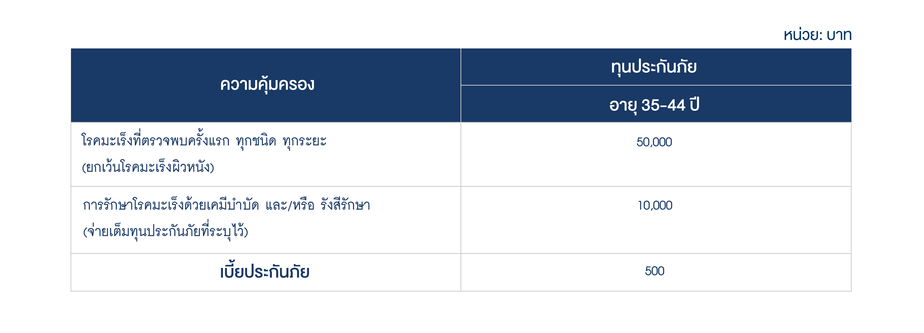 • รับประกันภัยตั้งแต่อายุแรกเกิด - 54 ปี และสามารถต่ออายุกรมธรรม์ได้ต่อเนื่องจนถึงอายุ 65 ปี