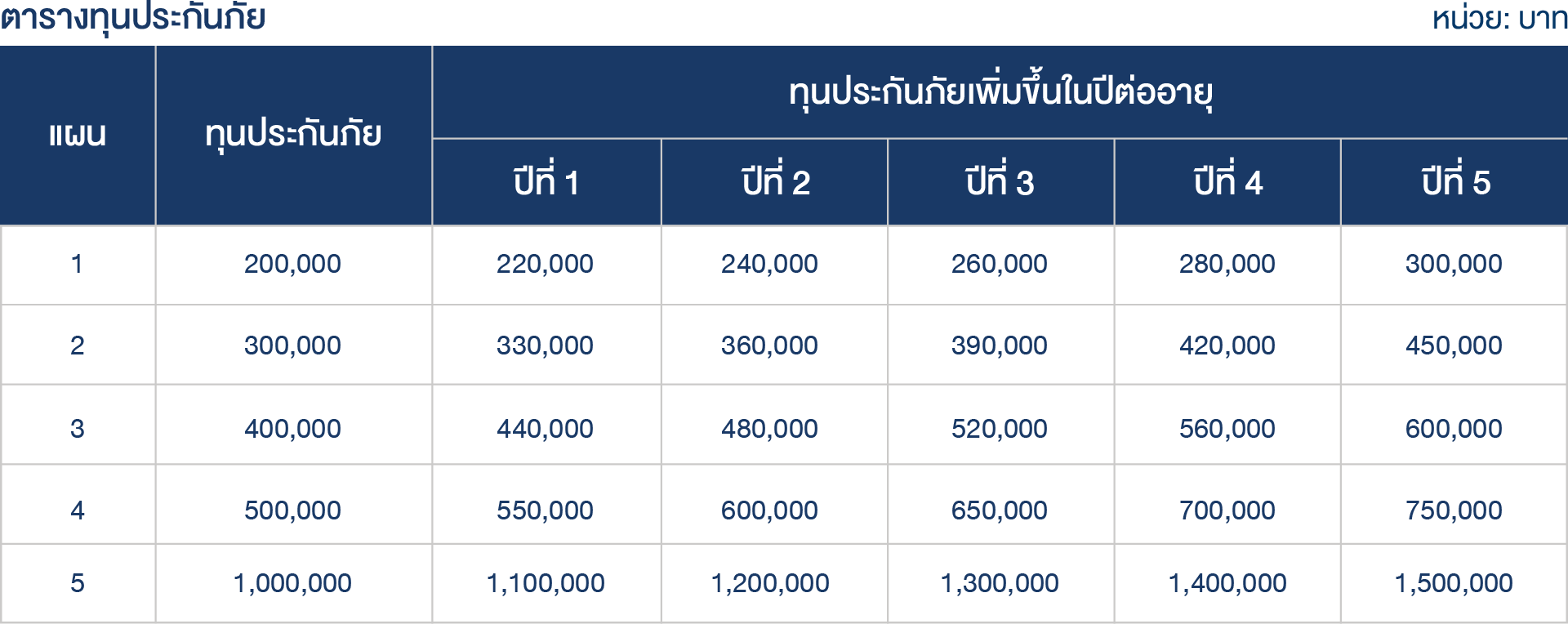 เพิ่มทุนประกันภัยในปีต่ออายุ ปีละ 10% จากทุนประกันภัยตามแผน
