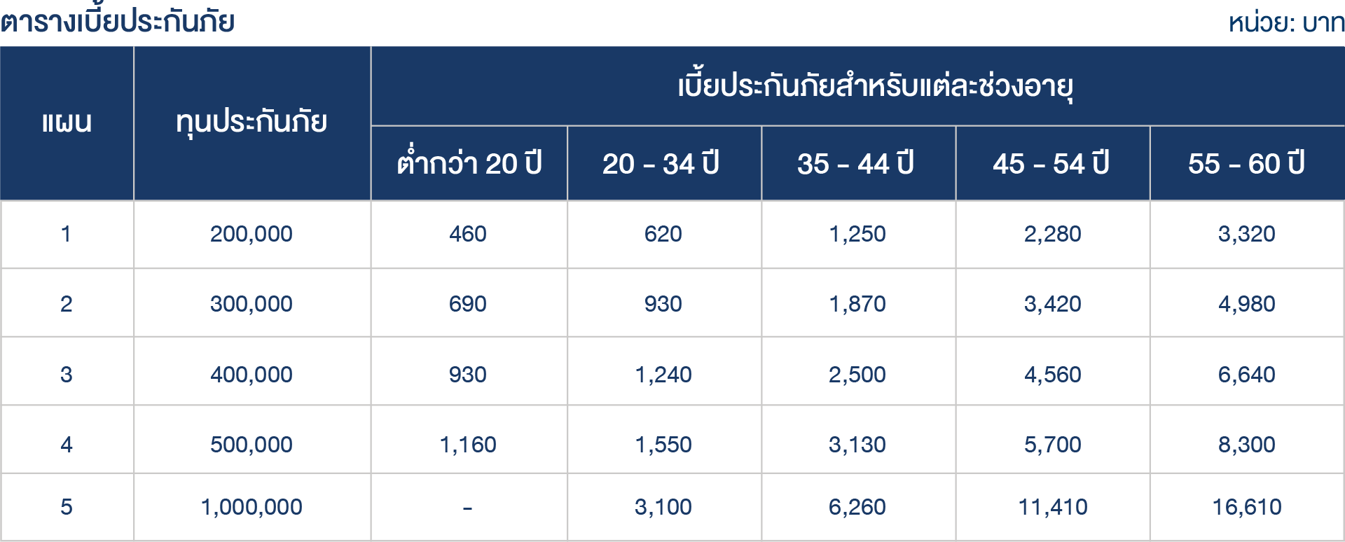 และสามารถต่ออายุกรมธรรม์ได้ต่อเนื่องถึงอายุ 70 ปี