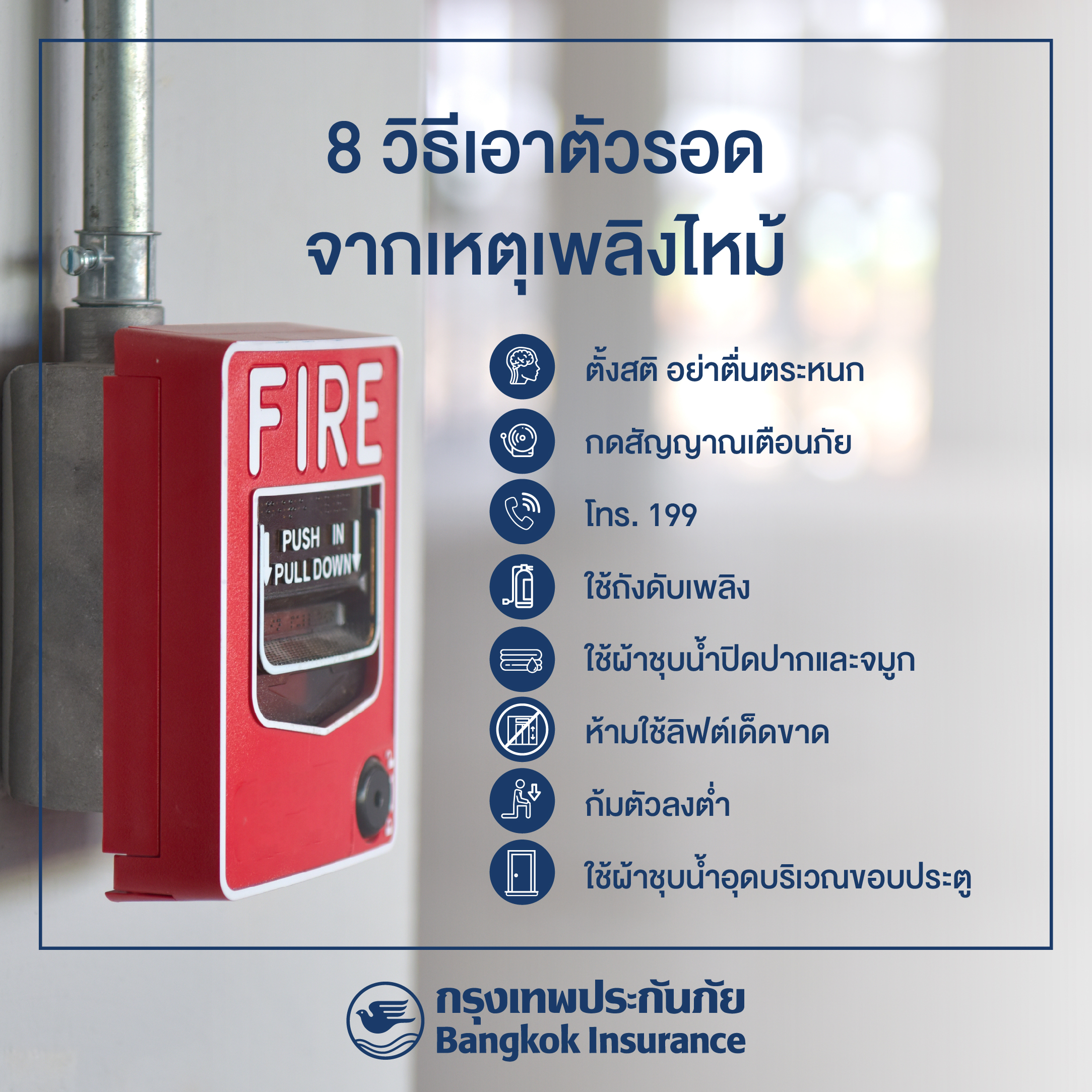 เหตุเพลิงไหม้ คือเหตุการณ์ที่เกิดขึ้นอย่างฉับพลัน และส่วนใหญ่มักเกิดขึ้นโดยไม่ทันตั้งตัว แถมสร้างความเสียหายต่อชีวิตและทรัพย์สินให้แก่ผู้ประสบภัยได้อย่างร้ายแรง การรู้วิธีเอาตัวรอดจากเหตุเพลิงไหม้ที่ถูกต้อง จึงเป็นเรื่องสำคัญที่เราทุกคนควรรู้เอาไว้ วันนี้เรามีวิธีเอาตัวรอดในกรณีเกิดเหตุเพลิงไหม้อย่างไม่คาดฝันมาฝากกัน