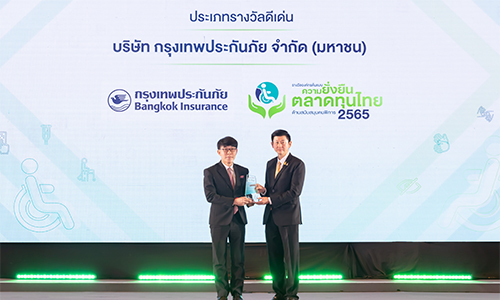 กรุงเทพประกันภัยได้รับรางวัลองค์กรต้นแบบความยั่งยืนตลาดทุนไทยด้านสนับสนุนคนพิการ ประเภทดีเด่น จากงานมอบรางวัลองค์กรต้นแบบความยั่งยืนตลาดทุนไทยด้านสนับสนุนคนพิการ ปี 2565 โดยได้รับเกียรติจากคุณบุญชอบ สุทธมนัสวงษ์ ปลัดกระทรวงแรงงาน เป็นประธานในพิธีและเป็นผู้มอบรางวัลดังกล่าวให้แก่ ดร.อภิสิทธิ์ อนันตนาถรัตน ประธานคณะผู้บริหารและกรรมการผู้อำนวยการใหญ่ ซึ่งจัดโดยสำนักงานคณะกรรมการกำกับหลักทรัพย์และตลาดหลักทรัพย์ (กลต.) ร่วมกับกระทรวงแรงงาน กรมพัฒนาฝีมือแรงงาน กรมการจัดหางาน กรมส่งเสริมและพัฒนาคุณภาพชีวิตคนพิการ สมาคมบริษัทจดทะเบียนไทย และสมาคมสภาคนพิการทุกประเภทแห่งประเทศไทย โดยบริษัทฯ ยึดมั่นในการดำเนินธุรกิจที่ให้ความสำคัญในการส่งเสริมความเท่าเทียมกันของพนักงานทุกคน และมีนโยบายเพิ่มโอกาสการจ้างงาน พร้อมสนับสนุนการสร้างอาชีพให้แก่ผู้พิการในองค์กร โดยจัดอุปกรณ์และสิ่งอำนวยความสะดวกที่เอื้อต่อการทำงานและสอดคล้องต่อความต้องการของผู้พิการ ส่งผลให้กรุงเทพประกันภัยได้รับรางวัลองค์กรต้นแบบดังกล่าว อันนำไปสู่การพัฒนาองค์กรอย่างยั่งยืนต่อไป ณ แกรนด์ บอลรูม โรงแรมแกรนด์ ไฮแอท เอราวัณ กรุงเทพฯ เมื่อวันที่ 21 พฤศจิกายน 2565